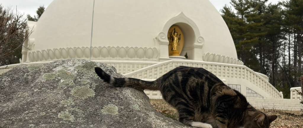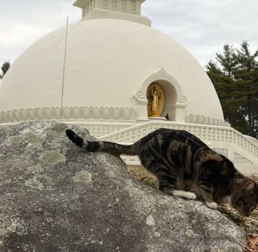 A friendly cat at the Nichiren Peace Pagoda in Massachusetts.