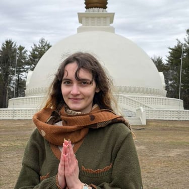 At the Pagoda, I found peace. On a cold and cloudy day, not many people walked the grounds having hiked up there from the parking lot. Never in my life have I seen a building so tall that my eyes struggled to conceptualize its depth. A field lay before us scattered with monuments telling stories of peace and support from the indigenous people of the land. Standing erect at the end of the field was the 100-foot Pagoda, adorned with intricate sculptures and lotus pathways. A temple was found to the left, where chanting and services may happen. While no people came forth, a friendly she-cat made herself known and followed us around. On the opposite side of the property were the healthiest pine trees I had ever seen surrounding a frozen pond, prayer flags strewn between the branches. We enjoyed a vegan tofurky and cheese sandwich among the rock garden. A bizarre phenomena graced our senses.. the two of us at different times heard what appeared to be the Nichiren daimoku chanting despite no one and no recordings present. It was as if the breeze and land carried the message through the Earth.